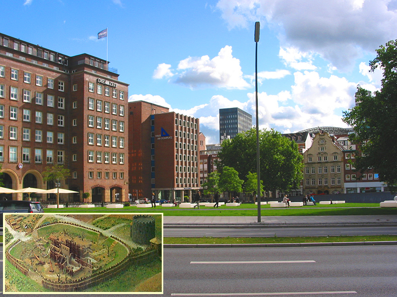 Domplatz: Archäologie-Park seit 2009 (Bezug zur Hammaburg und dem St. Mariendom)